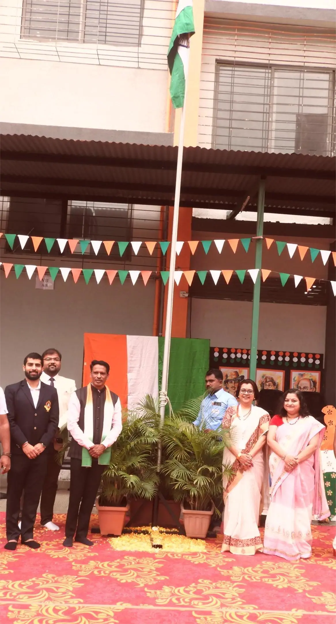 Adhira International School celebrated Independence Day on 15th August 2025 with great patriotism and enthusiasm. The programme included a flag hoisting ceremony, parade, patriotic songs, dances, and inspiring speeches by students. The vibrant performances filled the campus with the spirit of unity and pride. The Chief Guest was Mr. Ganesh Somnath Navale, an artist, gymnast, and Shiv Chhatrapati Awardee