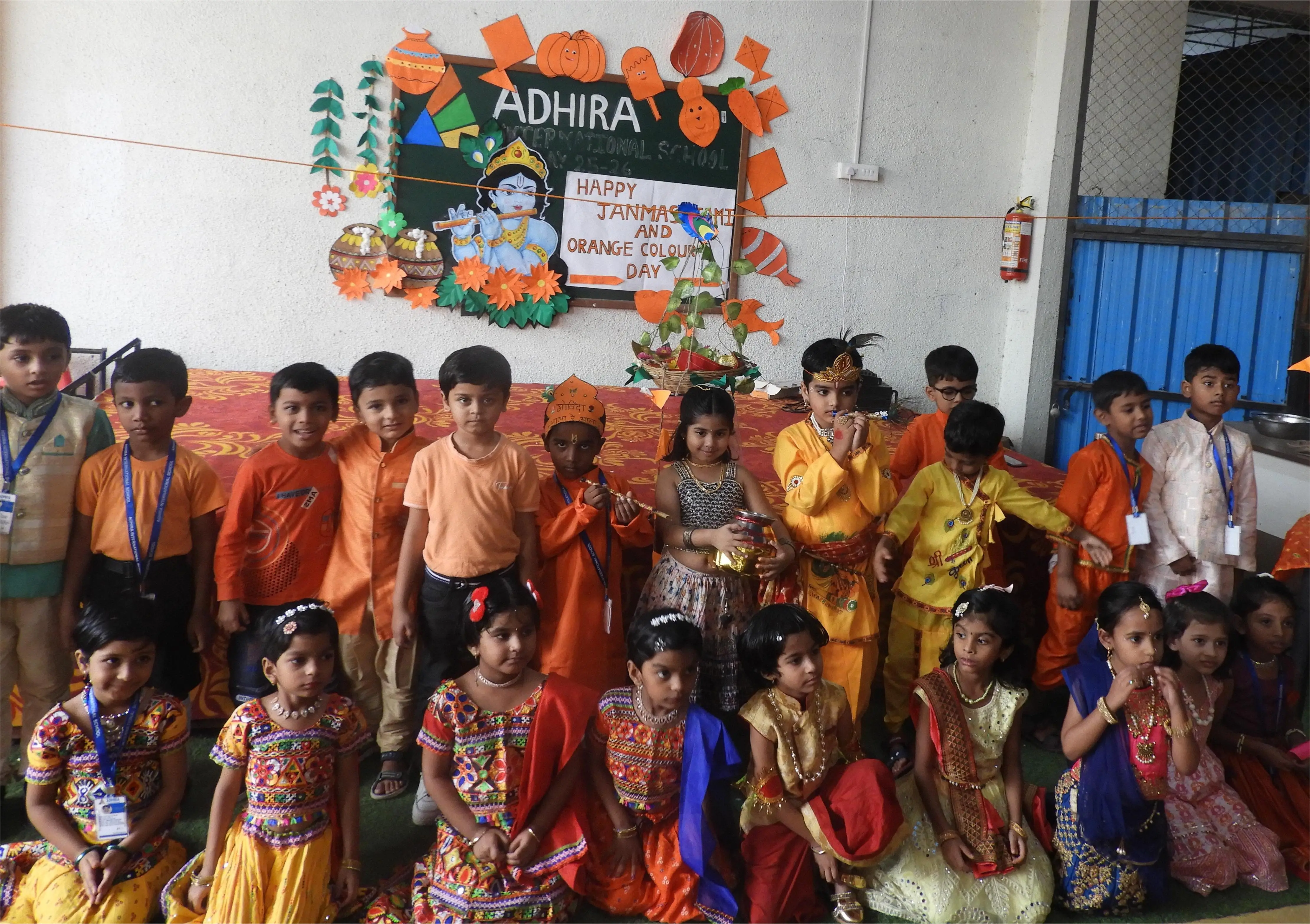 On Thursday, 21st August 2025,our Pre-Primary students celebrated Janmashtami and Orange Day with great enthusiasm. The little ones looked vibrant in shades of orange and joyfully participated in cultural activities depicting Lord Krishna’s birth. The celebration beautifully combined learning about traditions with the happiness of colours and festivity.